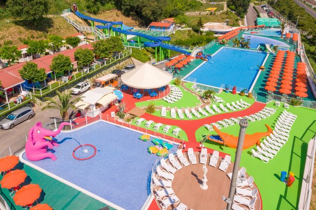 piscine*; aquapark*; ombrelloni e lettini* in piscina, salvo disponibilità; ristorante*; servizio d'asporto; pizzeria*; bar*; market*; bazaar*; negozi*; edicola; tabacchi; ambulatorio* medico; custodia valori; baby room*; nursery* room; sala Tv; bar* in spiaggia; spiaggia libera; spiaggia* attrezzata; servizio navetta* interna al villaggio; servizio navetta* da/per spiaggia; connessione internet; ginnastica*; aerobica*; lavatrice ed asciugatrice; stireria; pedalò*; escursioni; animazione*; animazione* in spiaggia; aree* fitness (dal 04/06 al 16/09), campo da tennis*, campo da calcetto*, campo da basket*, beach tennis*, beach volley*; ping pong; mini golf.