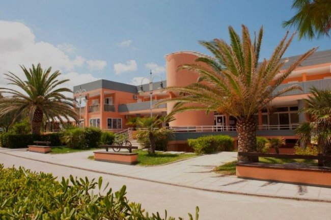 appartamento trilocale in muratura, di circa 40 mq, al piano terra o 1° piano; aria condizionata, angolo cottura (in area giorno); frigo; tv; telefono; 1 camera con letto matrimoniale; 1 camera con letto a castello; divano doppio alla francese in area giorno; bagno con doccia e bidet. Veranda o balcone di circa 20 mq attrezzata con tavolo e sedie.
