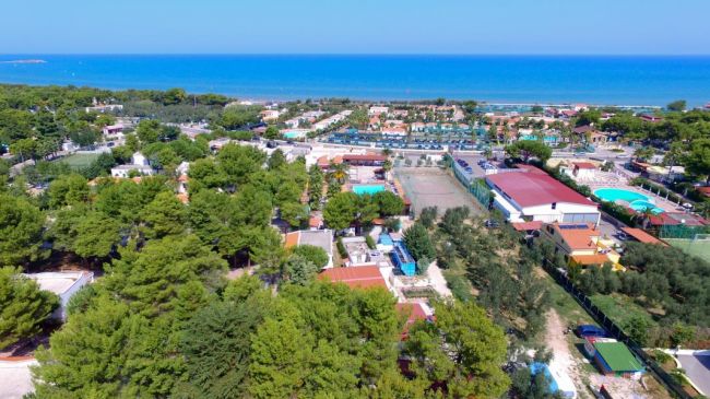 Piscina con idromassaggio, lettini, salvo disponibilità; bar; pizzeria; servizio take-away; ristorante; area fitness; campo tennis; campo da bocce; ping pong; area barbecue; lavatrici a gettoni; farmacia all'interno del villaggio; posti auto.