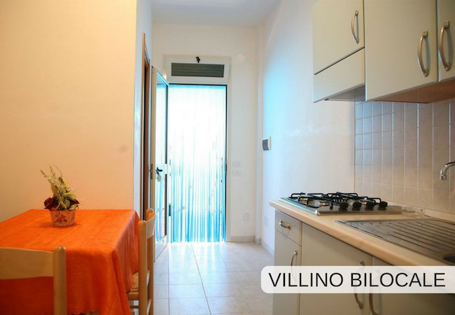 Alloggio in muratura a schiera; di circa 38 mq; al piano terra; ingresso indipendente con 3 gradini; aria condizionata a pagamento; tv; angolo cottura con frigo in area giorno; 1 camera con letto matrimoniale; divano con letto estraibile oppure letto a castello in area giorno; 1 bagno con doccia; veranda esterna con tavolo e sedie.